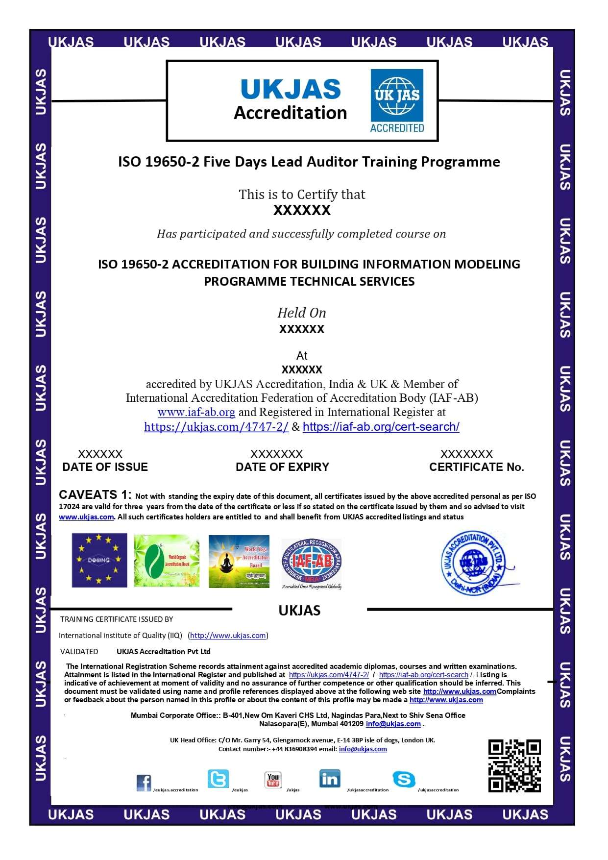 UKJAS Accreditation Pvt. Ltd organizing 5 Days Lead Auditor Training Programe Classroom & online Training course for ISO 19650-2 ACCREDITATION FOR BUILDING INFORMATION MODELING PROGRAMME TECHNICAL SERVICES
