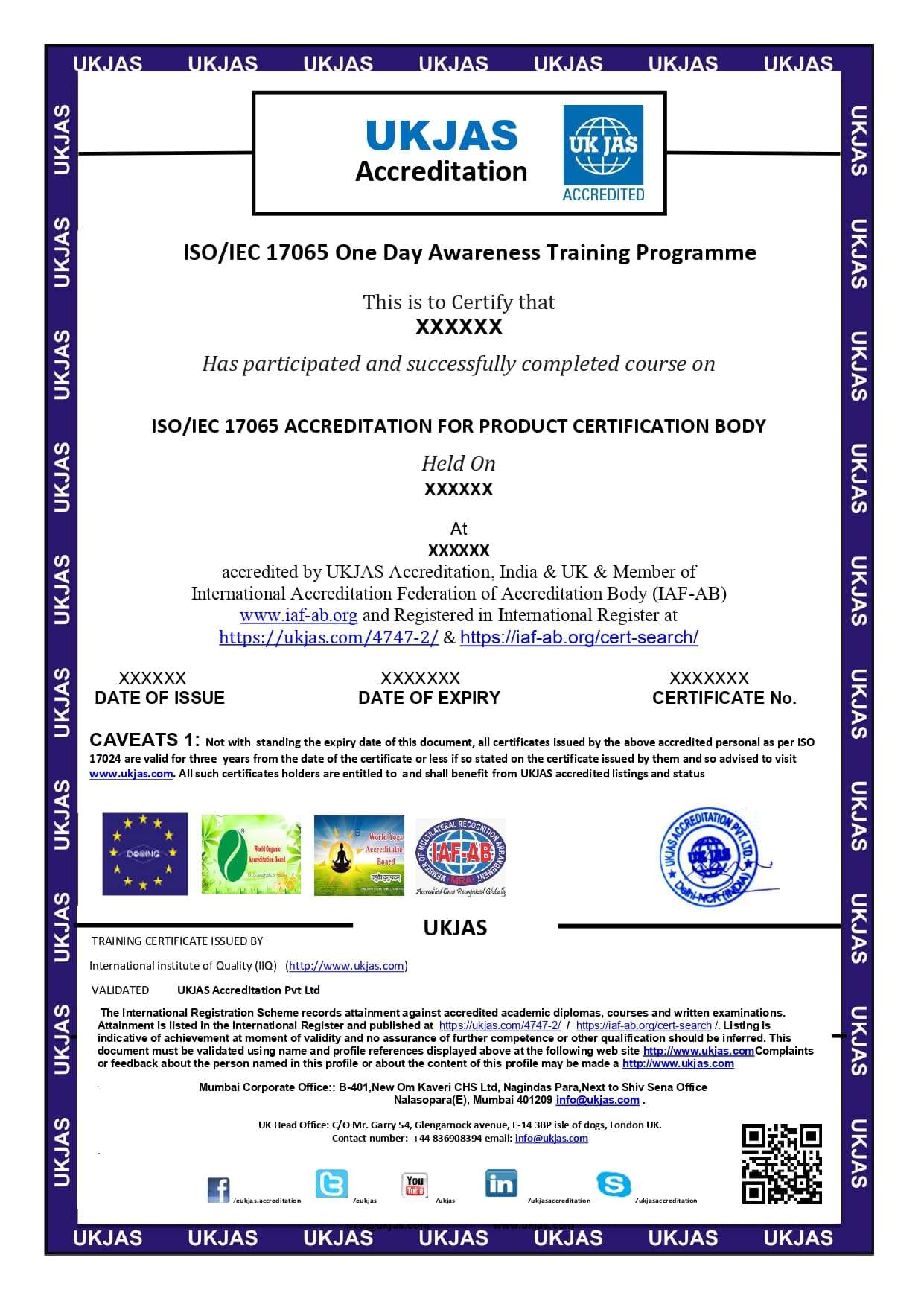 UKJAS Accreditation Pvt. Ltd organizing 1 Days Awareness Training Programe Classroom & online Training course for ISO/IEC 17065 ACCEDITATION FOR PRODUCT CERTIFICATION BODY.